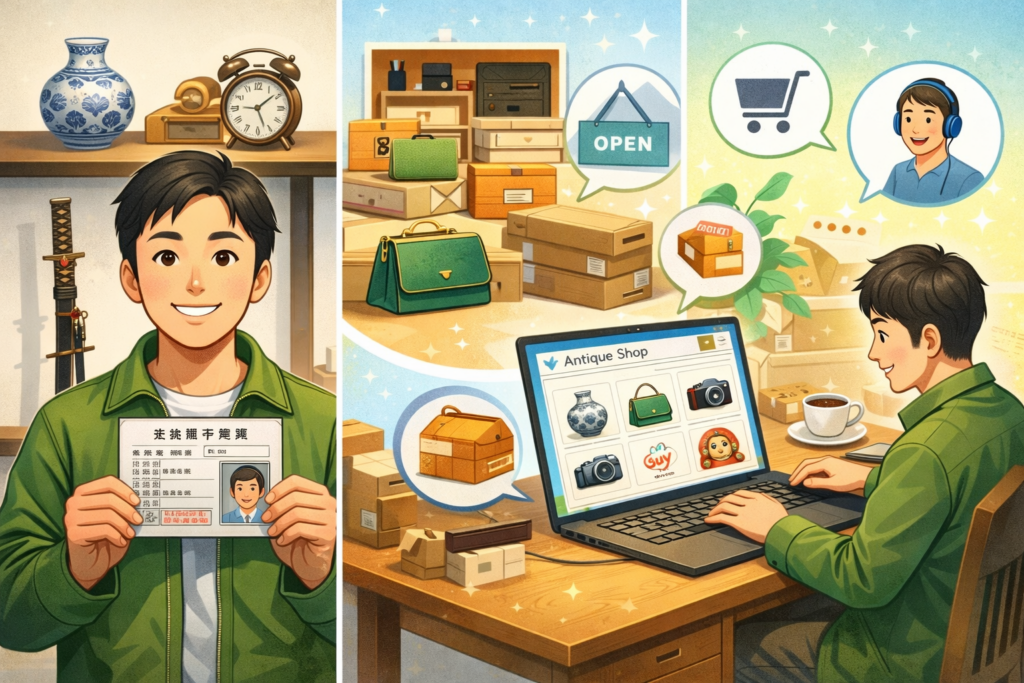 - 個人、法人の古物商免許取得手続。メルカリなどのネットショップで中古品を継続的に業務として扱う場合にも必要になることがあります。